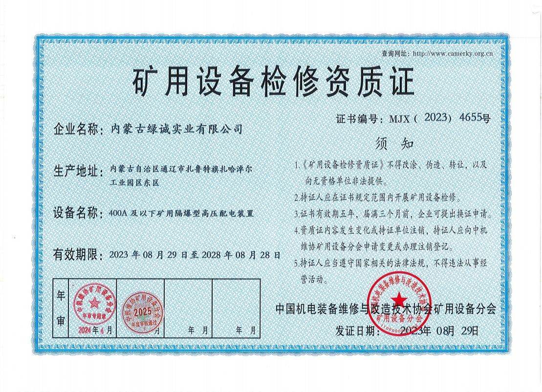 2018年我公司通過中國機電裝備維修與改造技術協會礦用設備分會審核并取得了9項礦用設備檢修資質證書。公司本著“誠信為本 質量為先 全心全意為客戶 ”的服務理念,圓滿完成各個廠礦的機械維修及配套服務,期待與您共同合作。
